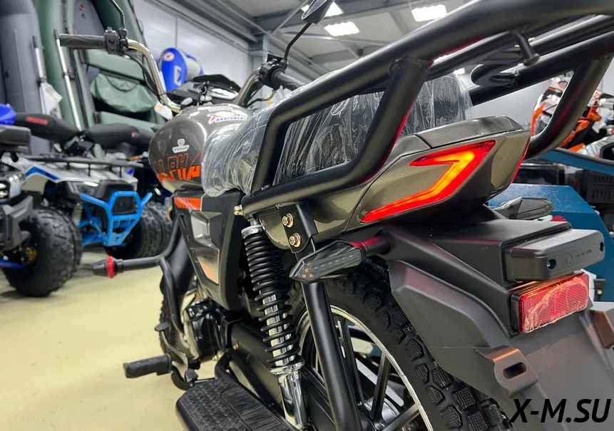 Хлормолибденовый сплав рамы, позволяет увеличить нагрузку до 250кг, при этом мотоцикл даже легче других своих аналогов на металлической раме!