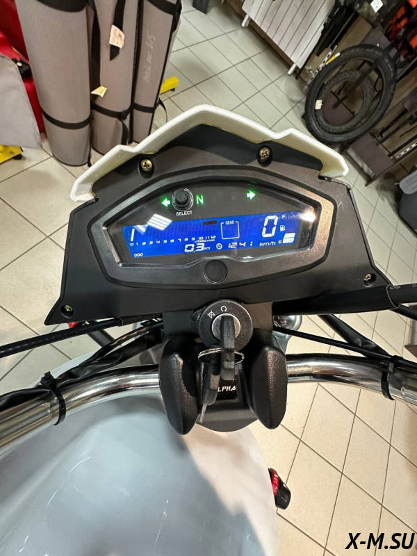 Максимальная скорость ограничена в пределах достигает 90 км/час, к сожалению таково требования законодательства, хотя мотоцикл может значительно больше!
